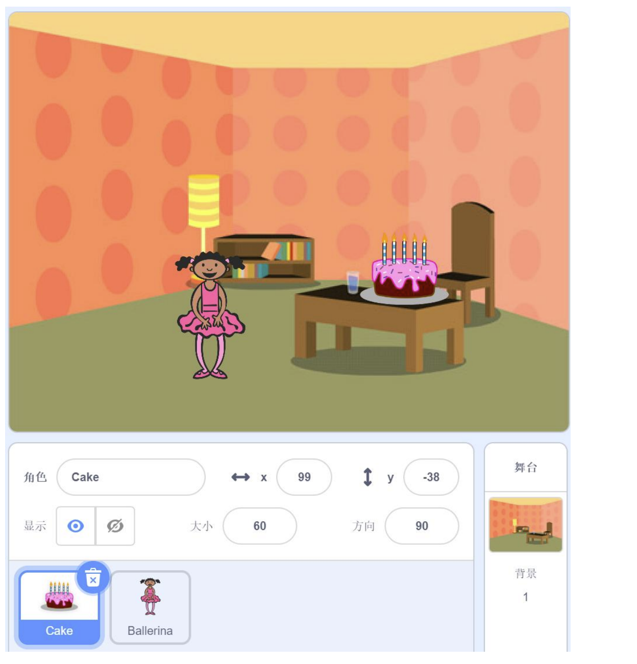 (2)添加角色蛋糕(Cake)和芭蕾舞者(Ballerina)。