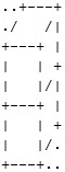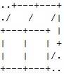 每个顶点用1个加号‘+’表示,长用3个‘-’表示,宽用1个‘/’表示,高用两个‘|’表示。字符‘+’ ‘-’ ‘/’ ‘|’的ASCII码分别为43,45,47,124。字符‘.’(ASCII码46)需要作为背景输出,即立体图里的空白部分需要用‘.’代替。立体图的画法如下面的规则: