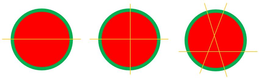 老师借给了小 $A$ 一把锋利的西瓜刀,小 $A$ 可以借助这把西瓜刀,每次在西瓜的圆形切面上,**完整且不弯曲的切一刀**。